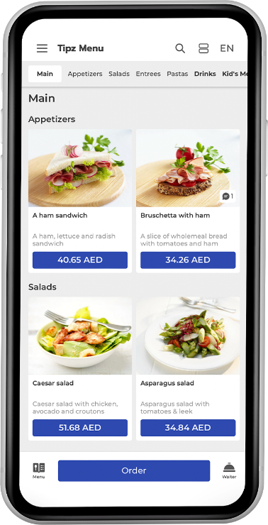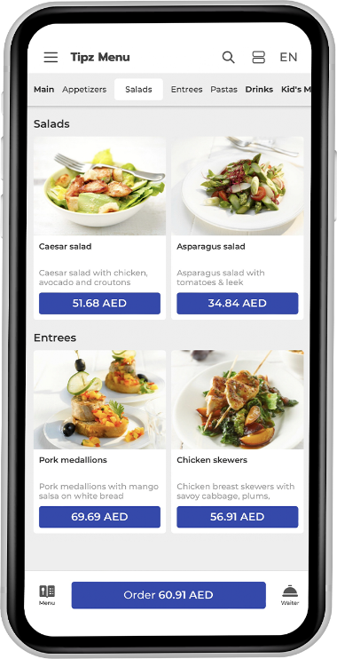 Tipz.Menu-ის საშუალებით, შეგიძლიათ დაათვალიეროთ მენიუები,