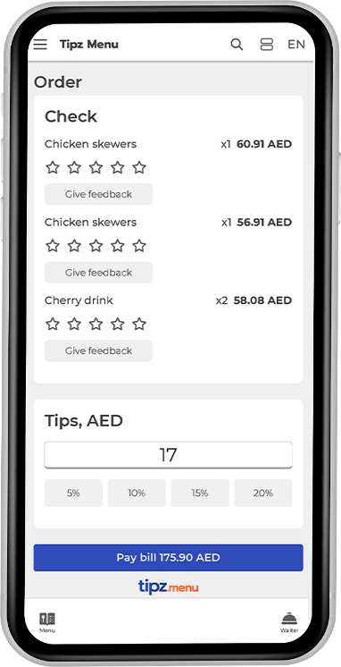 Tipz.Menu საშუალებას გაძლევთ გადაიხადოთ თქვენი შეკვეთები